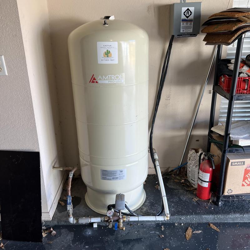 Cactus Water Well Services replaced a faulty pressure tank with a larger upgraded unit in Crowley, Texas. The new installation includes a warranty for added assurance. This service improved water system performance by increasing storage capacity and reliability.